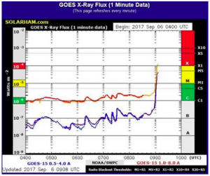 09:15 – Region 2673 produced a major X2.2 solar flare at approximately 09:14 UTC (Sept 6). This is the first X-Class event to be detected since May 2015. The active region is still in a decent position for Earth directed eruptions.