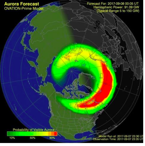 Aurora – Aurora may be seen as low as Pennsylvania to Iowa to Oregon, Scotland and Ireland.